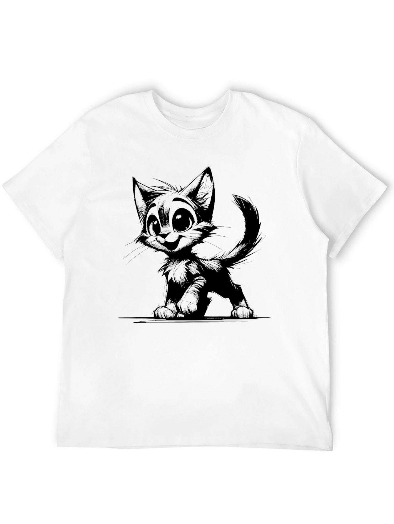 Show off your playful side with this charming black unisex t-shirt! Featuring a delightful cartoon-style kitten graphic, this tee is perfect for cat lovers and anyone who appreciates whimsical designs. The graphic is a detailed sketch of a kitten standing, which adds a touch of artistry. Made from a comfortable-looking fabric, this t-shirt is ideal for casual wear, lounging at home, or making a statement wherever you go. Its unisex fit makes it a great gift option for friends and family. Add a dash of fun to your wardrobe with this unique and eye-catching tee!