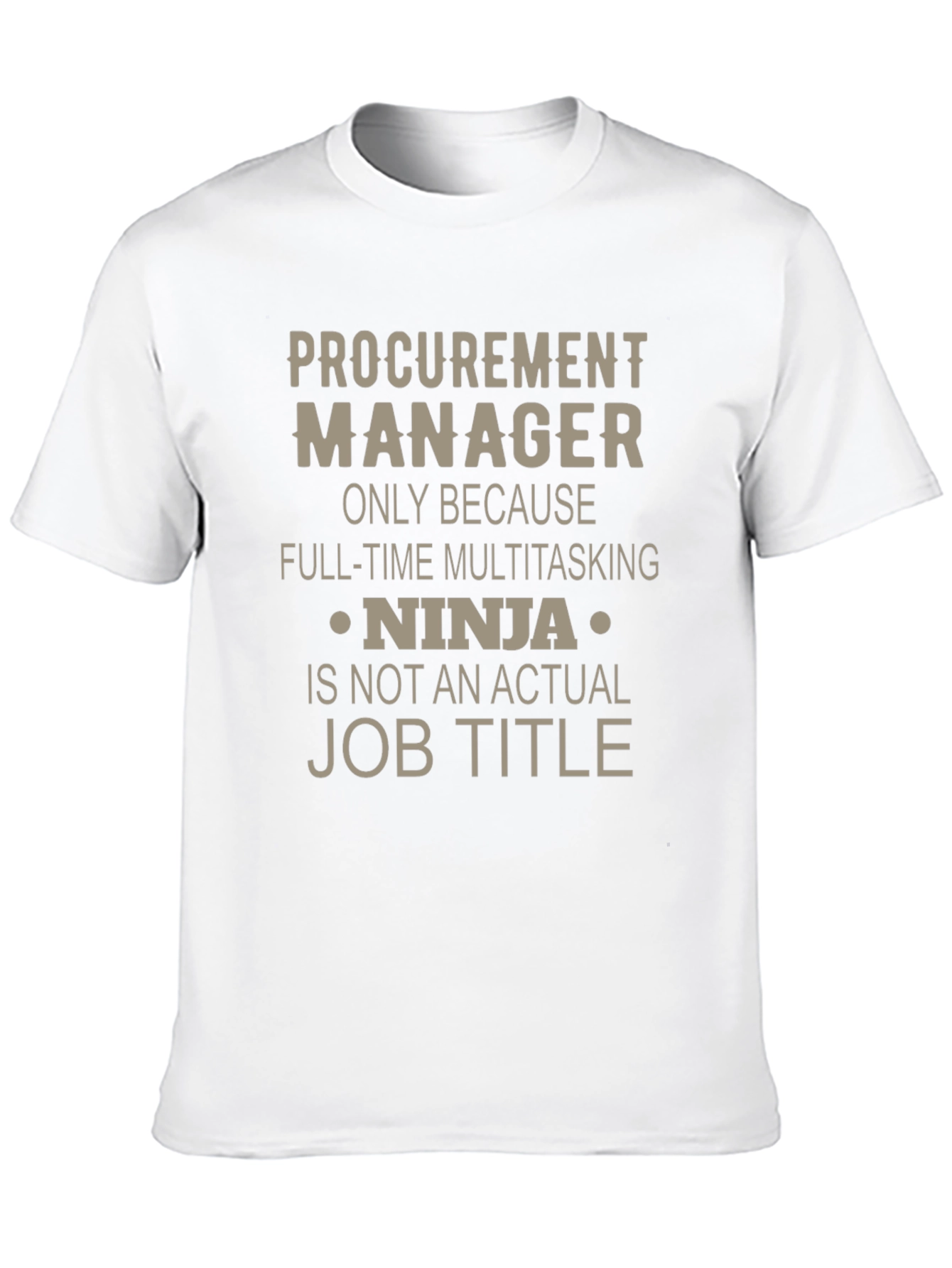 This black t-shirt features a humorous design for Procurement Managers. Made from comfortable material, it proudly declares "Procurement Manager only because full-time multitasking ninja is not an actual job title". This shirt is perfect for casual wear at the office, industry events, or just relaxing at home. Show off your profession and sense of humor with this unique tee!